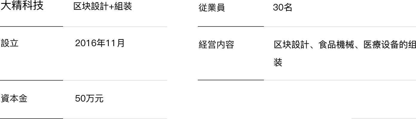大精科技主要从事设计、组装业务,依据大精机械零件加工的平台以及自身的专业组装技术、设计、机电采购团队,为客户提供了一站式服务,降低了客户的成本及风险,提供有效的配套服务。现主要为德国及意大利等客户。