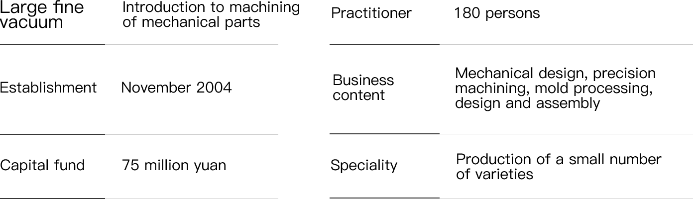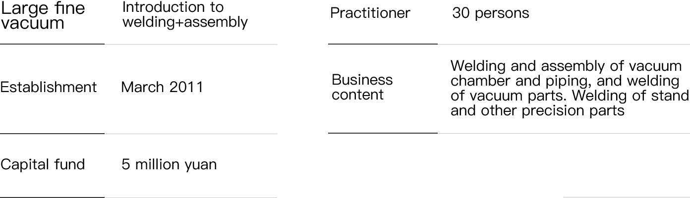 Hangzhou Dajing Vacuum Technology Co., Ltd., founded in 2010, is a subsidiary of Hangzhou Dajing Machinery Manufacturing Co., Ltd. It is a Sino Japanese joint venture with a total investment of more than 10 million yuan. Now it has 36 technical staff, more than 20 sets of equipment, such as automatic welding machines and nitrogen leak detection. It is mainly engaged in the welding and assembly of vacuum chambers and the manufacturing of vacuum pipe joints. Its main customers are KOSCO Group, Hitachi Group, Watka Group, etc.